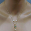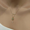 Revel in the refined elegance of this 14K gold-filled hammered open circle filigree necklace, meticulously handcrafted in Montana, USA. Made in the USA, this American-made piece beautifully combines artisanal craftsmanship with exquisite materials, making it a standout accessory for those seeking a distinctive addition to their jewelry collection. The delicate filigree pendant is masterfully adorned with sparkling 4 mm Swarovski crystal pearls and a luminous green Swarovski crystal, arranged to capture light and attention effortlessly. Suspended from a shimmering 14K gold-filled sparkly cable chain, this necklace balances intricate design with everyday wearability, making it a versatile choice for both casual and formal occasions.