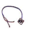 - Materials: Purple braided leather and waxed cord with beaded accents
