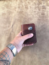 Buffalo Nickel Leather Card Wallet – Dark Oil Brown Minimalist Design | Handmade in USA