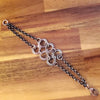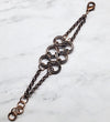 - Design: Three double infinity symbols, wire sculpted and soldered closed on a 5mm copper Rollo chain