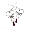 Designed to captivate with artisan charm, these Crystal Drop Copper Heart Earrings are handcrafted in Montana, proudly made in the USA. Featuring an original design by Alexa Martha Butler, these earrings combine hammered copper wire with delicate wire wrapping to create an elegant heart-shaped silhouette. Suspended from sterling silver French fishhook ear wires, each earring showcases a shimmering Swarovski crystal drop—available in a deep blood-red or sparkling Crystal AB finish. The lower portion of the earrings transforms into a graceful, cross-inspired motif, blending rustic artistry with refined sophistication. Perfectly suited for those who appreciate handcrafted jewelry, these earrings provide a unique touch to any outfit, balancing bold design with timeless elegance.