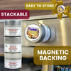 - Packaging: Gift-ready tube with signature magnetic tins that stick conveniently to refrigerators or metal surfaces