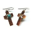 - Materials: Handcrafted hammered copper cross charms (24 gauge), turquoise jasper beads (4mm), sterling silver wire wrapping and ear wires