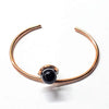 Crafted in Montana by a skilled local artisan, this exquisite teardrop bangle is a beautiful symbol of Child Abuse Awareness, handmade in the USA with meticulous care. Featuring a sturdy 10 gauge solid bare copper wire, this American-made bracelet showcases a striking 10 mm Sparkly Blue Black Sandstone gemstone bead wire-wrapped in sterling silver for a shimmering contrast. Designed not only for its symbolic significance but also for daily wear, the bangle is thoughtfully crafted to stay securely in place without turning on the wrist. Its slightly adjustable form ensures a comfortable fit while making a meaningful statement. This unique copper and silver ribbon bracelet blends purposeful artistry with durable construction, perfect for those who appreciate handcrafted jewelry with a story and impact.