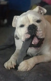 Carefully crafted in the USA, the Indestructibone Professional Grade Smooshy Face chew toy is the ultimate solution for short-snouted dogs weighing between 40 and 80 lbs. Designed specifically for brachycephalic breeds like Bulldogs and Boxers, this indestructible dog chew toy features a slightly narrower width—about ¼ inch less than other sizes—to fit comfortably in smooshy faces without sacrificing durability or safety.