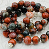 - Colors: Natural multi-hued red, black, and cream tones unique to each bead