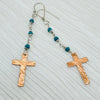 - Dimensions: Copper cross measures 0.75 inches wide by 1.15 inches long; total earring length is 3.25 inches
