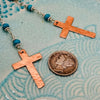 Embracing the art of hand forging, these JANECKA Turquoise and Copper Rosary Earrings represent a stunning example of American-made craftsmanship, handcrafted in the USA with meticulous attention to detail. This unique jewelry piece is brought to life through the rare and delicate process of hand fabrication — shaping raw, cold-rolled sheets of copper by hand hammering to form each cross, resulting in nearly 50% harder and more durable metal than traditional casting methods. Complemented by vibrant December birthstone turquoise beads intricately wrapped in sterling silver wire, these earrings marry rustic elegance with a spiritual charm. Designed to make a statement, they capture the rich heritage of multi-generational artistry, offering a meaningful addition to your jewelry collection or a heartfelt gift for someone special.