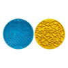 Transform bath time into a fun and calming experience with this Large Blue Whale & Large Yellow Duckies Bathtub eMat Lick Mat Bundle, handcrafted in the USA. Perfectly designed as an enrichment bowl, these American-made lick mats offer a soothing distraction for your dog while you give them a bath. Made from durable TPE synthetic rubber, each mat features suction cups on the back to securely attach to smooth surfaces like tubs or showers. This FDA-approved dog supply promotes healthy licking behavior that aids digestion, freshens breath, and supports dental health. As a group 1 enrichment for dogs, it encourages slow feeding and mental engagement, helping to reduce anxiety and overfeeding with ease.