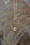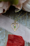 Celebrate lasting love with this Medium Soulmate Heart Necklace, handcrafted in the USA to symbolize the unique bond between two souls. Crafted from .925 genuine sterling silver with a luxurious 14kt gold overlay, this American-made necklace blends timeless elegance with meaningful design. The centerpiece features a delicate heart embracing a pair of intertwined figures, highlighted by a vibrant emerald cubic zirconia that adds a stunning pop of color and sparkle. Designed to be worn close to the heart, this necklace offers a refined expression of connection and devotion, perfect for anniversaries, Valentine’s Day, or as a heartfelt gift for your special someone.