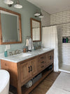 Transform your bathroom sanctuary with this custom framed mirror, expertly handcrafted in the USA from premium northeastern white pine. Measuring 72" L x 36" H with a thickness of 1 1/4", this American-made vanity mirror offers personalized craftsmanship tailored to your needs. Crafted in Indiana by Limitless Woodworking, this mirror can be customized in size, stain color, and hardware to perfectly complement your space. Sanded, stained, and sealed for a flawless finish, it combines rustic charm with durable construction, ensuring it stands the test of time. Each mirror is made to order, reflecting a commitment to quality and individuality that elevates your home décor with a timeless handmade touch.