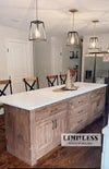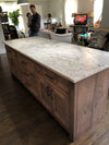 Elevate your culinary space with a truly personalized centerpiece—this custom kitchen island, handcrafted in the USA. Meticulously crafted from premium furniture-grade wood right here in Indiana, this island offers the perfect blend of durability and timeless design. Handmade in the USA, it features five functional drawers and four shaker-style doors, crafted to provide ample storage while complementing a variety of kitchen aesthetics. Each piece is carefully sanded, stained, and sealed with Envirolak Topcoat to ensure lasting beauty and protection. While the countertop is not included, matching solid wood countertops are available to complete your tailor-made kitchen solution. Whether you want a compact or extended length, this made-to-order kitchen island adapts to your specific needs, making it an exceptional addition to any home looking for rustic kitchen décor with an American-made finish.