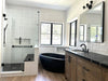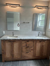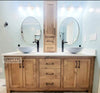 Elevate your bathroom space with this custom double sink vanity, expertly handcrafted in the USA. Carefully crafted in Indiana, this American-made bathroom cabinet combines durable furniture-grade wood with artisan attention to detail, offering a timeless storage solution for modern bathrooms. While the countertop and sinks are not included, this vanity is perfectly designed to complement your unique style with customizable options in size, stain color, and hardware, ensuring a piece that truly reflects your taste. Finished with a high-quality Envirolak topcoat for lasting protection, this double sink vanity blends classic shaker-style doors with practical storage features, making it a standout addition to any bathroom décor.