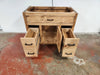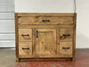 Elevate your bathroom with this custom single sink vanity, expertly handcrafted in the USA from premium northeastern white pine. Made in America with meticulous attention to detail, this vanity is sanded, stained, and sealed to highlight the natural beauty and durability of the wood. Designed for those seeking a personalized centerpiece, you can select your preferred size, stain color, and hardware to perfectly suit your space. While the countertop is not included, this solidly built piece provides an ideal foundation for any high-quality top. Each vanity is made-to-order, ensuring a bespoke finish crafted just for you from a family-owned workshop in Indiana dedicated to quality and craftsmanship. Experience the warmth and character of an American-made bathroom vanity that blends traditional woodworking skills with modern customization options.