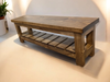 Introduce a blend of rustic charm and practical design to your home with this custom entryway bench, expertly handcrafted in the USA. Made from premium furniture-grade wood, this American-made bench features a robust build, enhanced by a slatted bottom shelf that offers stylish and functional storage. Ideal for organizing shoes, baskets, or other essentials, the bench’s thick wood construction ensures longevity and timeless appeal. Meticulously sanded, stained, and sealed with an environmental Envirolak topcoat, each piece is finished to perfection with a commitment to quality you can trust. Handmade in Indiana, this entryway staple invites a modern yet warm aesthetic to your foyer or mudroom, marrying durability with classic woodwork artistry.