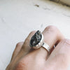 Adjustable Hammered Silver Band Ring – Raw Oval Meteorite Stone | Unique Space Jewelry Gift