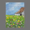 - Design: Vibrant field of wildflowers with rustic barn artwork