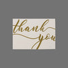 - Design: Gold cursive "Thank You" lettering on a clean, white background