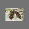 - Design: Hand-drawn pinecones on a natural evergreen branch