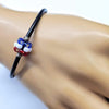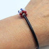 Patriotic Red White Blue Beaded Leather Bracelet – 3mm Black Cord | Made in USA
