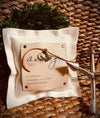 Custom 9 Inch Felted Wool Ring Bearer Pillow – Engraved Leather Patch | Made in USA
