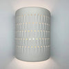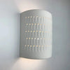 The Samos Sconce is a sleek, perforated, half-cylinder flush wall light, designed to create a striking up-and-down light pattern through its open top and bottom. This contemporary fixture is perfect for illuminating guest bathrooms, grand entryways, outdoor patios, and other architectural features. Designers often customize its finish to harmonize with their chosen color schemes, and it pairs beautifully with other fixtures from our Islands of Light Collection for a cohesive look. Additionally, the Samos Sconce is compatible with energy-efficient LED and smart light bulbs, offering both style and practicality. Handcrafted by skilled artisans in the USA, our ceramic lighting is built with meticulous attention to detail, ensuring durability and timeless appeal.