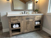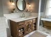 Expertly designed to elevate your bathroom’s aesthetic, this custom single sink vanity is handcrafted in the USA from premium northeastern white pine. Each piece is meticulously sanded, stained, and sealed to highlight the natural grain and ensure long-lasting durability. Proudly American-made in Indiana, this vanity allows you to customize dimensions, stain colors, and hardware to perfectly fit your unique space and style. Measuring 48" L x 22" D x 34" H as photographed, this handcrafted bathroom vanity combines rustic charm with modern functionality, making it a standout feature in any bathroom remodel or new build. The sink and countertop are not included, allowing you the flexibility to pair this superior cabinet with your choice of fixtures and surfaces.