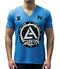 - Color: Deep charcoal base with distressed blue and white graphic print