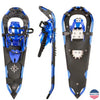 Crafted specifically for women adventurers, the Leadville 29 Blue women's backcountry snowshoes, handcrafted in the USA and made in Denver, Colorado, offer an exceptional blend of lightweight design and rugged performance. Crafted with precision using premium 6000 series aluminum, these snowshoes are ideal for women weighing up to 200 pounds who seek reliable traction and ease of movement on deep powder, steep inclines, and fresh snow. The American-made single-pull binding system provides a secure, comfortable fit tailored to women's narrower, shorter strides, making every winter hike more natural and effortless.