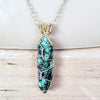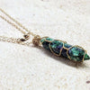 - Design: Handmade gold wire wrapped double-pointed caged crystal pendant