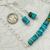 Discover authentic handcrafted elegance with the JANECKA 14"-23" American Mined Turquoise Necklace Set, carefully crafted in the USA. This exquisite jewelry set showcases genuine American mined turquoise gemstones, each uniquely shaped into flat, irregular disk beads that capture the natural beauty and rich heritage of this prized stone. Renowned for its spiritual and protective qualities, turquoise has long been valued not only for its vibrant hues but also for its ability to foster clear communication, self-purification, and emotional balance. This artisan-designed necklace features a sterling silver chain with an adjustable length from 14 to 23 inches, secured by a charming heart clasp, allowing for versatile wear. Complementing the necklace are matching earrings adorned with hand-forged sterling silver ear wires, designed for secure comfort and lasting style. Handmade in the USA with sterling silver sourced domestically, this set is the perfect blend of craftsmanship and meaningful symbolism—ideal for celebrating December birthdays or commemorating 5th and 11th anniversaries.