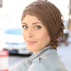 Crafted from soft mocha chiffon with subtle ruffle layers, this signature piece adds feminine volume while gently mimicking the natural appearance and feel of hair. Its thoughtfully constructed neck scarf enhances coverage and comfort, eliminating the anxiety often associated with traditional head wraps or scarves.