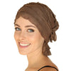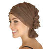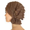 Mocha Chiffon Ruffle Chemo Beanie Scarf – Soft Comfort Headwear | Made in USA – Sara