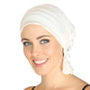 White Ruffle Chemo Beanie Scarf – Slip-On Headwear | Made in USA – Stella