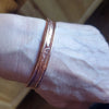 Designed to captivate attention, these Stackable Hammered Double Canted Angle Bangles are handcrafted in Montana, offering an exclusive touch of American-made artisan jewelry. Made in the USA, each bangle features a distinctive double-canted design with a hammered texture on both sides, creating a unique play of light and shadow. This original design by Al blends sophisticated craftsmanship with versatile style, allowing you to wear them individually for understated elegance or stacked together to make a bold, trendy statement. Crafted from high-quality, health-beneficial pure copper, these bangles boast a warm rose gold hue that enhances any outfit with a subtle shimmer. Handmade in Montana, each piece is slightly adjustable and sculpted with care to ensure comfort and durability, making these bangles a standout addition to your jewelry collection.