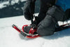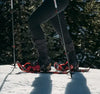The innovative tear-drop shaped aluminum frame, a hallmark of quality built in the USA, ensures both strength and reduced weight. Paired with a refined foot-forming binding, it secures your feet snugly for top-to-bottom stability throughout your journey, from start to finish. The switch to aluminum crampons further cuts weight while maintaining grip, enhancing the snowshoe’s overall agility without sacrificing traction. Complement your experience with optional neoprene booties to keep feet warm and dry, perfect for longer outings on brisk terrain.