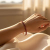 - Design: Continuous row of faceted red crystals creating a tennis bracelet style with an artisan twist
