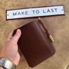 Whether you're an avid note-taker, creative thinker, or simply appreciate American-made leather craftsmanship, this Field Notes Sleeve offers a perfect blend of function and sophistication. Add this timeless accessory to your collection and enjoy the lasting beauty and practicality of a handmade leather companion.