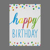 - Design: Colorful "Happy BIRTHDAY" text with playful confetti dots