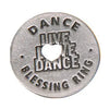 Infused with heartfelt symbolism, this Dance Blessing Ring shines as a versatile charm handcrafted in the USA, made from recycled, lead-free pewter. This American-made token uniquely features the inspiring words "Live Love Dance" surrounding a delicate heart cutout, while the reverse side bears the uplifting message "Express Yourself." Sized comparably to a quarter, it slips easily into a pocket or attaches effortlessly to bracelets, key chains, or necklaces. Designed to be more than just jewelry, the Dance Blessing Ring serves as a meaningful keepsake that commemorates life’s joyful moments, encouraging self-expression and celebration of movement through dance. Its handcrafted detail adds an authentic artisanal touch that makes it a thoughtful gift or personal talisman for those who live inspired lives and cherish symbolic reminders of love and freedom.