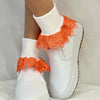 Elevate your sock game with the BLOSSOM Lace Cuff Socks, carefully crafted in the USA to bring you unique style and comfort. These women's cuff socks blend delicate lace detailing with bold orange accents, perfect for adding a festive touch to your fall wardrobe or a spirited flair to any group gathering. Designed to fit women's shoe sizes 6-10, these socks combine playful charm with everyday practicality, making them a standout accessory in the apparel & accessories category.