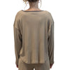 - Design: Scoop neck with contrast rib trim, long raglan sleeves, curved hem