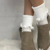Standing out in the category of women’s ankle socks, these lace cuff socks transform ordinary shoe ensembles into standout looks. Whether paired with heels or casual footwear, their intricate lace detailing provides a subtle sophistication, making them an ideal choice for fashion-conscious individuals seeking both style and comfort. The lightweight cotton material ensures breathability and durability, making these socks a reliable addition to your sock drawer.