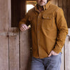 Introducing a rugged wardrobe essential, expertly handcrafted in the USA, the Wilson Button Down Shirt in Whiskey offers an elevated blend of durability and style. This American-made men's button down shirt features a mid-weight fabric with a subtle stretch component, designed to provide comfort and mobility without sacrificing structure. The Wilson’s silhouette mirrors the classic Nash cut but is enhanced with a slightly heftier fabric weight, making it ideal for cooler days or layering. Finished with a durable water repellent (DWR) treatment, this shirt resists spills and dries quickly, blending function with refined craftsmanship. Whether you’re headed outdoors or into a casual business setting, this premium button down shirt delivers a polished, athletic fit with practical details that elevate your everyday look.