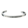 Embrace positivity with this Attitude of Gratitude Quotable Cuff Bracelet, handcrafted in the USA to serve as a stylish daily inspiration. Made from recycled lead-free pewter, this open cuff bracelet is more than just an accessory—it's a wearable reminder to cultivate gratitude each day. Carefully designed by Whitney Howard Designs and made in America, it blends meaningful messaging with elegant simplicity, making it a unique piece for those who appreciate thoughtful craftsmanship and uplifting quotes. Its open-ended design allows for easy wear and pairing with any outfit, turning a simple gesture into a powerful lifestyle statement.