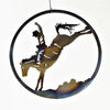 Evoking the spirit of the American West, this striking “Bucking Bronk Rider” silhouette is a testament to handcrafted artistry made in the USA. Handmade in the USA, this Circle Art piece measures a balanced 8.5" by 8.5", offering a distinct rustic charm perfect for both indoor and outdoor use. The sculpture captures the kinetic energy of a bucking bronco mid-motion, making it a captivating focal point for western-themed décor or any space craving a bold, American-made accent. Each metal piece is treated with a clear powder coating that guards against heat and moisture damage, ensuring lasting vibrancy and resilience whether mounted on a porch, patio, or living room wall.