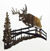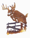 Enliven your living space with this captivating Deer Jumping Fence wall art, handcrafted in the USA to bring a genuine American-made flair to your home décor. This metal wall sculpture celebrates rustic wildlife scenery through its detailed silhouette of a deer leaping gracefully over a fence beside a tall pine tree. Each piece is expertly colored using heat application and finished with a clear powder coat to ensure lasting durability and protection against the elements. Ideal for indoor or outdoor display, this piece blends natural inspiration with artisanal craftsmanship, making it a compelling focal point for cabins, lodges, or country-style interiors.