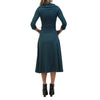 Step into elegance with the French Broad Dress, a stunning American-made piece handcrafted in the USA from eco-conscious Spiritex Organic Cotton. This dress boasts a shawl-cowl neckline adorned with delicate silver stud accents on both the sleeves and around the neck, creating a refined, vintage-inspired look. Designed with a fitted bodice and flattering A-line skirt, it effortlessly shapes your silhouette while offering comfort and style. Thoughtful details like double inset pockets and 3/4 length sleeves bring both functionality and charm to this mid-calf length dress. Whether worn to a casual gathering or a special occasion, this 50's inspired dress blends timeless fashion with sustainable craftsmanship.