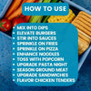- Use Cases: Sprinkle directly on foods before cooking, mix into ground meat, toss with veggies, make quick dips, or let kids self-serve for fun and confidence