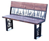 Infuse your outdoor space with the serene spirit of the wilderness with this Deer & Pine Forest Metal Art Bench, handcrafted in the USA. This beautifully American-made garden seating combines rustic wood textures with finely detailed steel artistry, perfect for those who appreciate nature-inspired décor. The plasma-cut steel backrest captures a quiet forest scene where deer roam amidst towering pine trees, delivering a touch of tranquil wilderness to your patio, porch, or cabin. Featuring a solid wood plank seat and upper backrest with warm grain patterns, this bench contrasts naturally with the matte black powder-coated steel frame, ensuring a striking yet harmonious design. Every angle reveals thoughtful metal artwork on the legs, echoing the mountain and forest theme for consistent visual appeal. Built to withstand outdoor conditions with a protective powder coating, this bench offers durability alongside its handcrafted aesthetic. Ideal for wildlife enthusiasts and outdoor lovers, it provides a comfortable retreat while enriching any lodge-style or garden setting with its authentic handcrafted charm.
